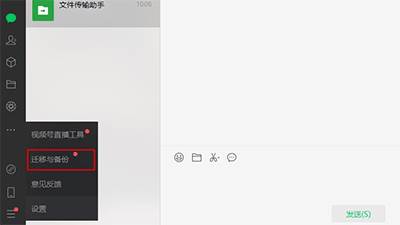 2、点击左下角“三条横线”,再选择迁移与备份