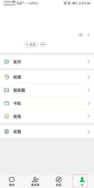 第一步、打开微信(我使用的是最新版的微信),点击钱包。